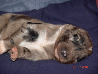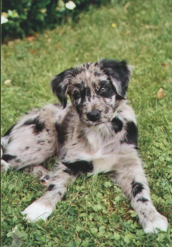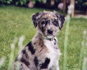 Elza v.d.Villa Grün schwarz-merle m. weißen Abzeichen, langes Fell mit wenig Unterwolle 58 cm Widerristhöhe und 25,3 kg Körpergewicht