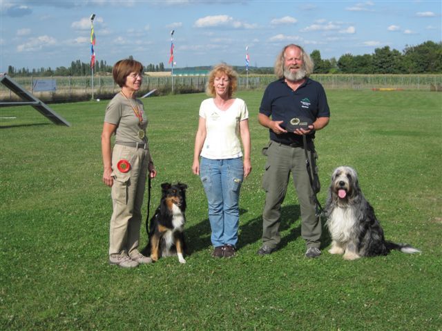 Etienne und Manfred haben bei ihrem ersten Obedience Turnier direkt 285 Punkte geholt und haben nicht nur den 1.Platz belegt, sondern sind auch Obedience Kreismeister geworden.Sommer 2009Herzlichen Glückwunsch!