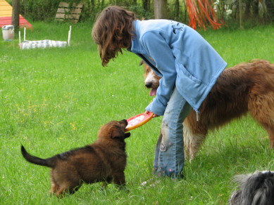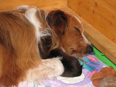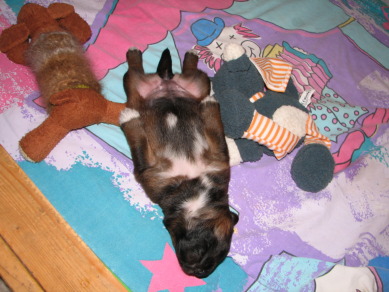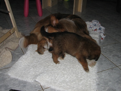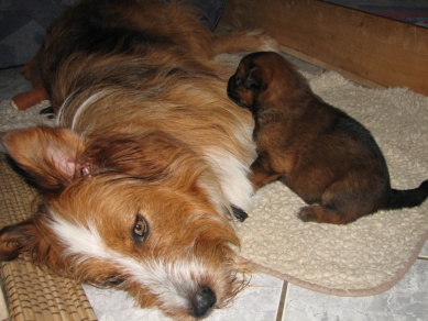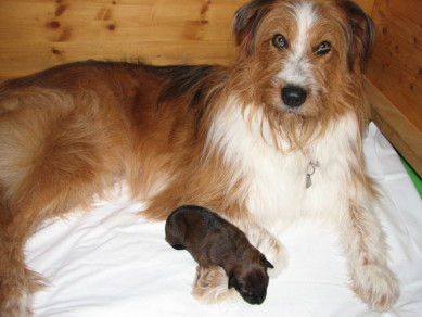 H-Wurf Der erste Wurf unserer Hündin Engie: Am 13.05.2007 wurde als einziger Welpe die kleine Hündin “Hazel” geboren. Sie wog 490g und ist putzmunter.Engie und Hazel geht es gut und auf dieser Seite werden wir die nächsten Wochen der beiden in unserer Familie dokumentieren. |