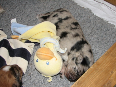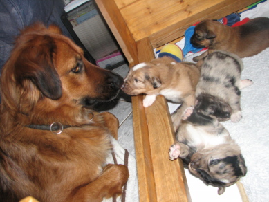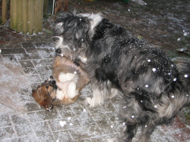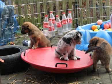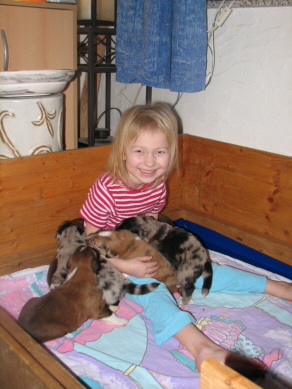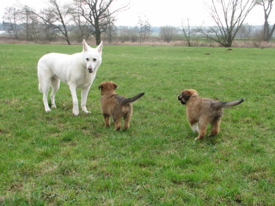 Deckrüde: Atze v.d. Villa Kunterbunt *25.09.2000 ZZL erfolgreich am16.03.2002 Größe: 61cm Gewicht: 28kg HD-B/Augen o.B. Atze ist ein ausgeglichener, freundlicher Rüde. Er geht sehr offen auf Menschen zu und kommt sehr gut mit Artgenossen aus. Er ist leichtführig und mag arbeiten. Er hat die Begleithundeprüfung absolviert und ist erfolgreich im Agility(A3). Er ist spielfreudig, mag gerne Nasen- und Intelligenzspiele sowie das Apportieren. Er ist sensibel ohne unsicher zu sein.