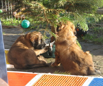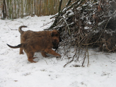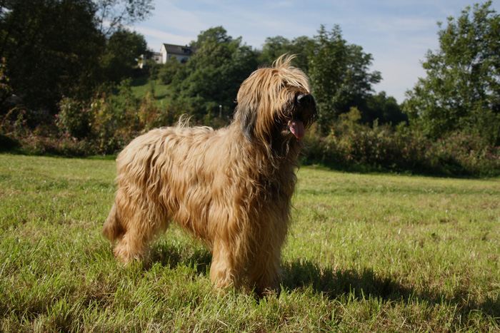 Tamino ist ein ausgeglichenes, freundliches Weswn und ist temperamentvoll, wenn es gebraucht wird. Ihn zeichnen Kraft, Ausdauer und schnelle Lernfähigkeit aus. Fremden zeigt er sich mit Briardtypischer Zurückhaltung, läßt sich aber gern anfassen und streicheln.Kindern und älteren Menschen gegenüber ist er freundlich und vorsichtig. Bei großer Sympathie zeigt er sich als Kampfschmuser. Der Damenwelt begegnet Tamino sanft und einfühlsam, ein Gentleman unter den Deckrüden. Tamino ist ein Gourmet, er liebt frische Waffeln und guten Käse über alles.