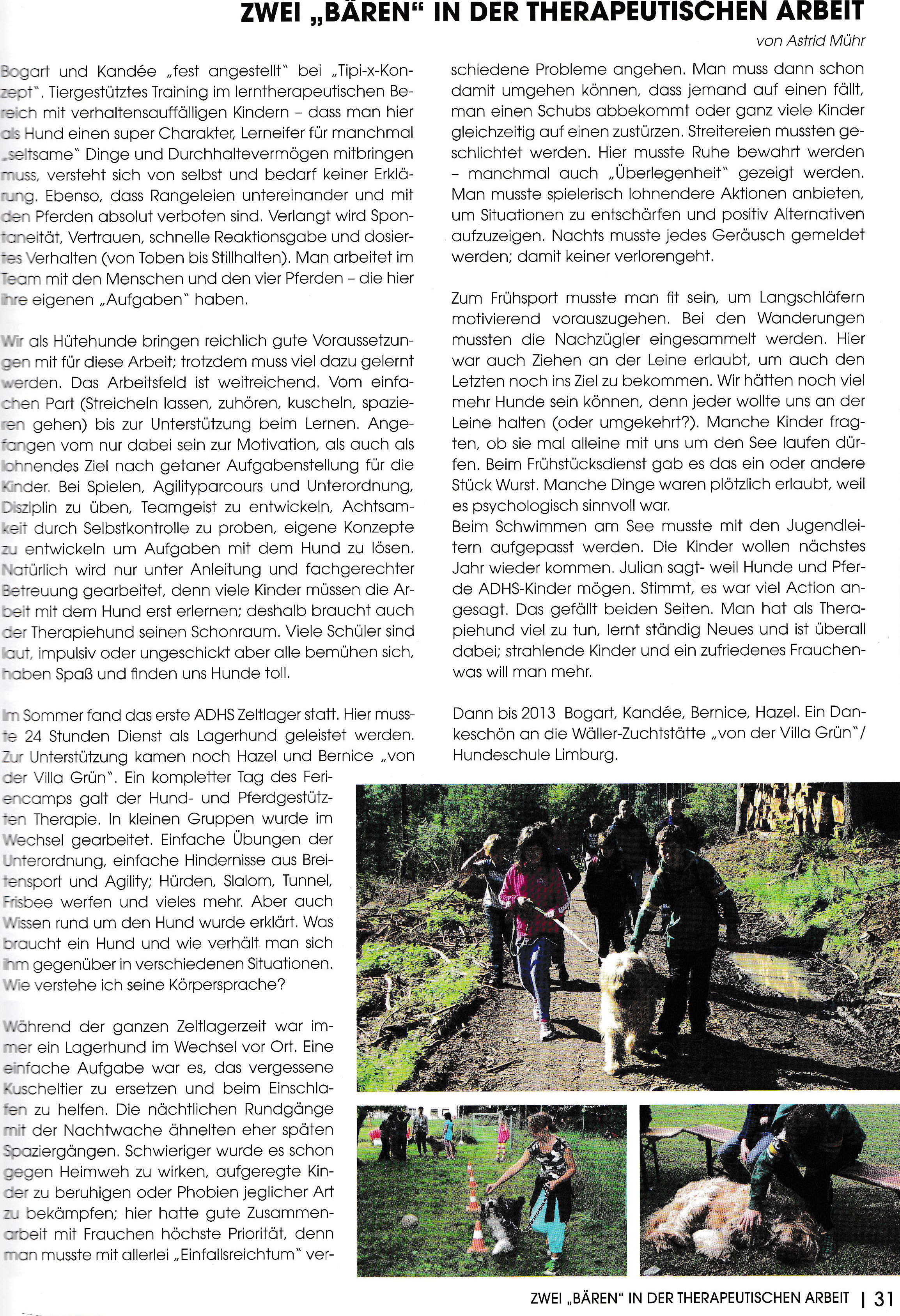 | Kandée ist am 01.04.2012 in eine neue Familie gezogen. Dort wird sie mit Briard Bogart Astrid bei ihrer Arbeit mit Kindern, die ADHS haben, begleiten und unterstützen. Wie gut sie das macht, sieht man im folgenden Artikel. |
